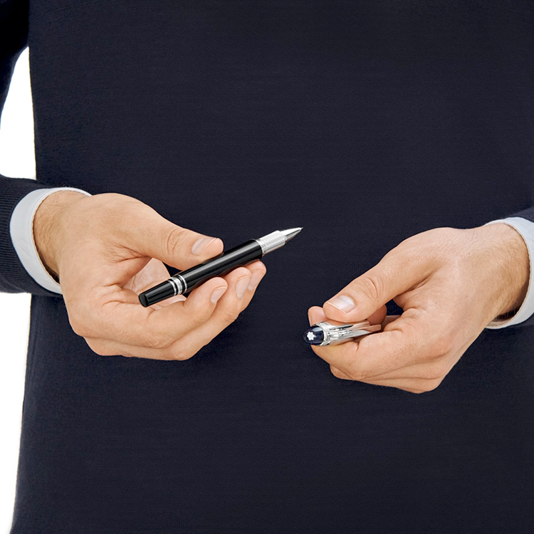 V luxusní řadě StarWalker představuje Montblanc dokonalé snoubení elegance a stylově čistého designu. Fineliner v této variantě atraktivně kombinuje černý hladký základ se stříbrným kontrastem. V průhledné špici pera je zachycena ikona značky, šesticípá bílá hvězda. Podtrhněte svou eleganci a vystupování mimořádným doplňkem.